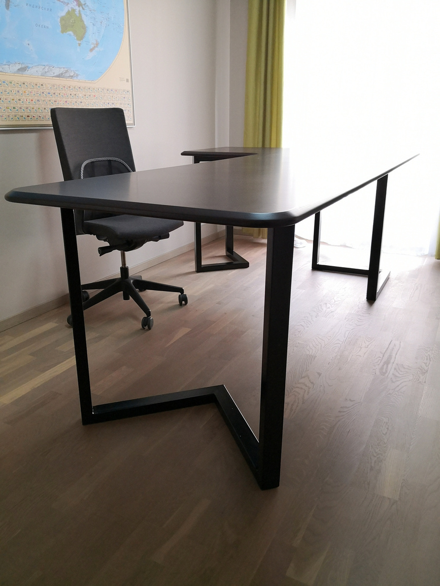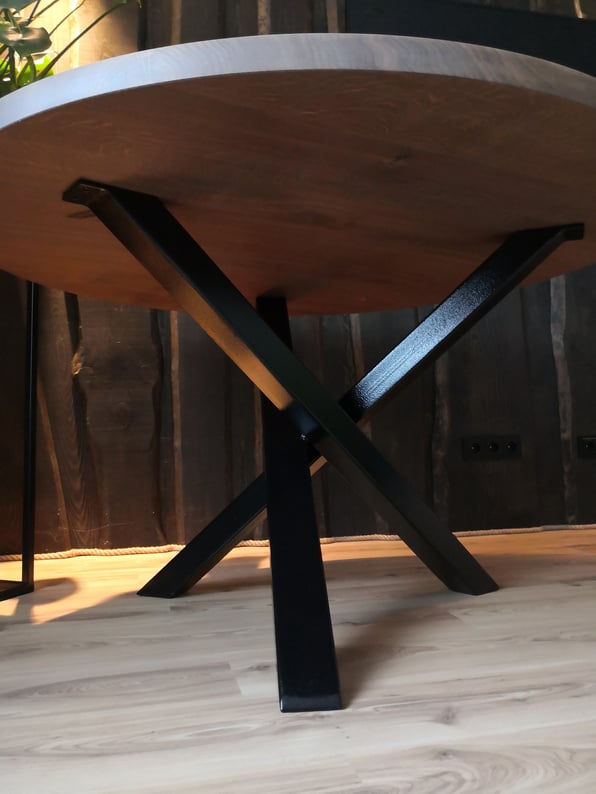 Galda kājas veidotas no bieza, stingra metāla. Galdam piešķirs modernu izskatu un ļaus atsvaidzināt jebkuru interjeru. Ir iespēja pasūtīt arī atsevišķi koka virsmu vēlamajā izmērā.