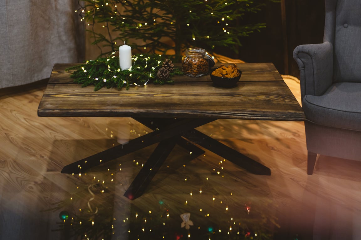 Katrs kafijas galdiņš ir roku darbs, standartā veidots no bieziem, pamatīgiem priedes dēļiem, apstrādātiem ar dabīgu lineļļu, kas izceļ koka rakstu un ir videi draudzīgs.